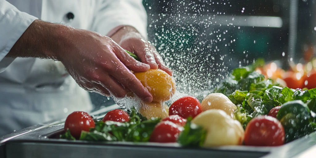 God produksjonshygiene består av flere tiltak som sikrer trygg matproduksjon. I tillegg til grundig håndvask bør arbeidsbenken og utstyret holdes rene. Det er også viktig å bruke separate skjærebrett og kniver til rått kjøtt, fisk og rå grønnsaker for å unngå kryssforurensing. Ved å holde rå og tilberedt mat adskilt, unngår vi at bakterier overføres og maten blir forurenset. Tilstrekkelig oppvarming av maten til + 70 ⁰C dreper farlige bakterier og gjør maten trygg å spise. Varmebehandlet mat bør kjøles ned raskt og skal ikke stå i romtemperatur i mer enn to timer. Den bør lagres ved temperaturer under + 5 ⁰C eller over 60 ⁰C for å stoppe vekst av mikroorganismer.